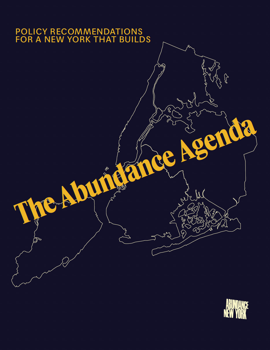 For a growing share of New York leaders and voters, Abundance is a watchword—a value that affirms we can have more than enough of everything we need to thrive. But the label is contested: what, in practice, does Abundance demand? This Agenda is our attempt to move Abundance in New York from north star to roadmap. We have worked to synthesize and expand on the incredible research, reporting, and advocacy of trailblazers to answer many of the questions that the nascent Abundance movement has left open. It examines the root causes of the scarcity New Yorkers face across housing, transit, energy, and governance; and lays out a set of concrete reforms that would make it easier, faster, cheaper, and fairer to build what New Yorkers need.